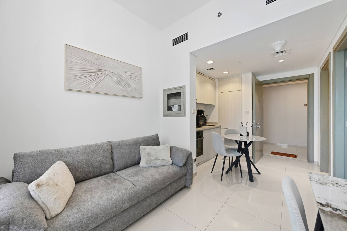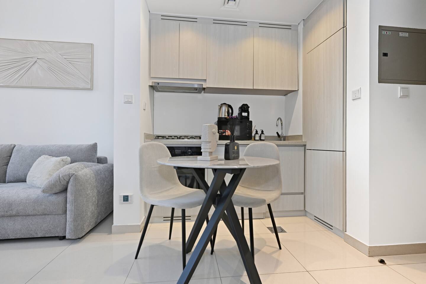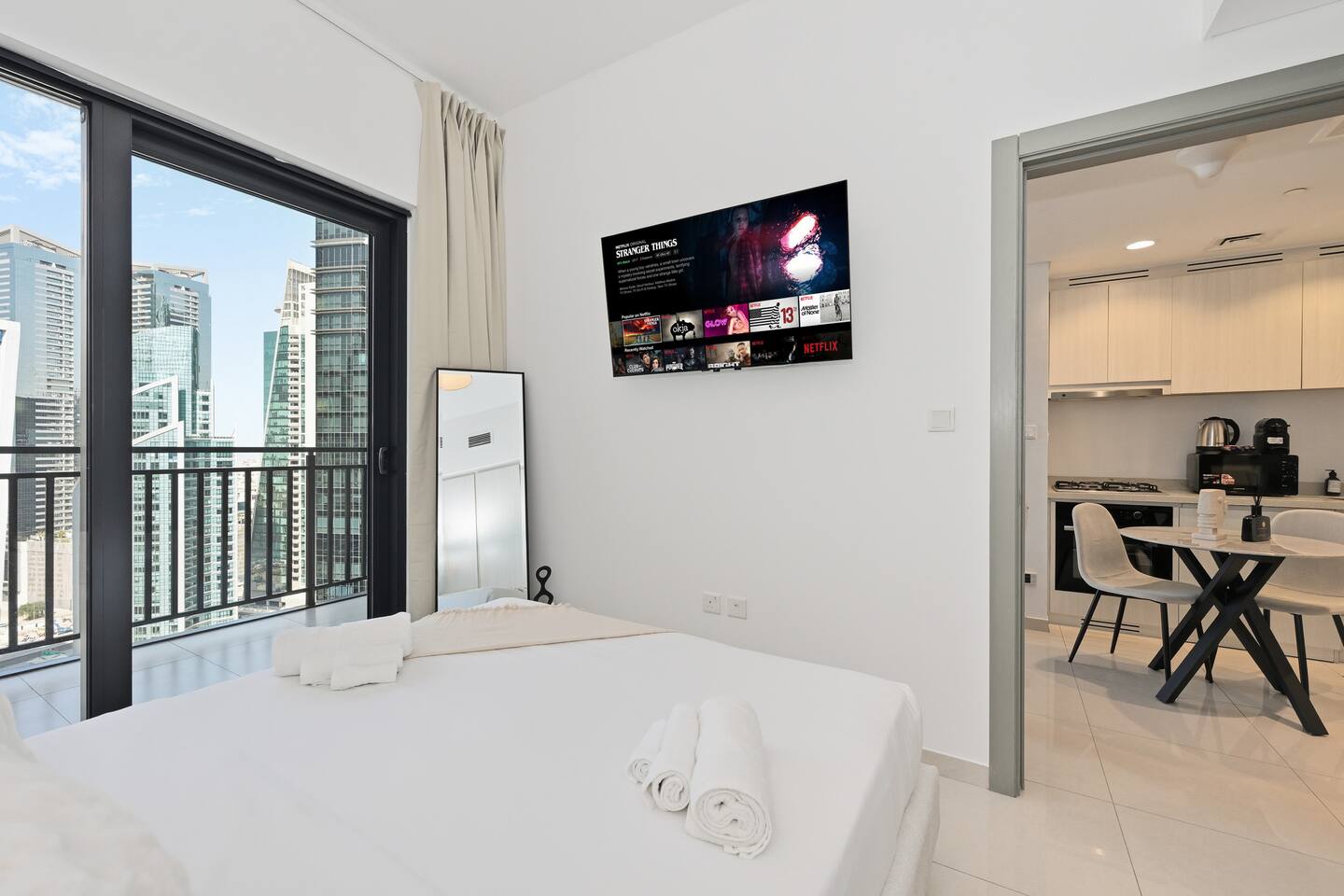 Superior 1 Bedroom Apartment High Floor in Business Bay near Metro with Stunning Skyline View! ★★★★★ Welcome to your elegant Dubai retreat: a brand-new 48 sqm high-floor apartment located in Business Bay, the most lively, central, and fast-growing district of the entire city. From here, you are just minutes away from Dubai’s key landmarks—while enjoying a refined space with a stunning Skyline view, directly from the comfort of your home. Perfectly positioned just 2 minutes from Business Bay Metro Station, the apartment offers exceptional connectivity: with the Metro you can reach any major area of the city—including Dubai International Airport (DXB)—quickly and effortlessly. Business Bay is Dubai’s vibrant business and lifestyle hub: a cosmopolitan community surrounded by restaurants, cafés, waterfront promenades, boutique gyms, beauty salons, supermarkets, Hot Tub and Steam bath and all daily services within walking distance. Ideal for guests seeking comfort, elegance, and immediate access to everything. Prime Location: - 2 minutes from Business Bay Metro Station; - 5 minutes from Downtown Dubai; - 5 minutes from Dubai Mall; - 5 minutes from Burj Khalifa; - 10 minutes from City Walk; - 12 minutes from DIFC; - 12 minutes from Dubai International Airport (DXB); - 15 minutes from Dubai Marina. The Space: Thoughtfully designed for modern comfort and style, this Superior 1 Bedroom Apartment is ideal for couples, solo travelers, families, and business guests who value quality, cleanliness, and a premium location. The high-floor setting ensures maximum privacy, tranquility, and brighter views throughout the day. Inside, the apartment features contemporary finishes, abundant natural light, and a smart layout that makes 48 sqm feel perfectly spacious. It is equipped with latest-generation soundproof windows engineered to block external noise entirely, ensuring a peaceful stay. Layout & Features: - N.1 Queen-size bedroom with premium linens and a 55" Smart TV with Prime Video included; - N.1 Living room with Double Sofa Bed and an additional 55" Smart TV with Prime Video included; - Fully equipped kitchen: oven, stove, microwave, fridge, kettle, washing machine, Italian Nespresso machine; - Private big terrace with Emirates Park Tower and other Skyline views, featuring open-air seating for morning coffee or evening relaxation; - Elegant bathroom with walk-in shower, fresh towels, complimentary toiletries, and a anti-dryness shower filter for superior hair and skin protection; - High-floor position granting serenity, privacy, and elevated views; - Latest-generation soundproof windows engineered to block external noise entirely, ensuring a peaceful stay. Dedicated work desk, perfect for remote working; - Iron, ironing board, and drying rack provided; - Free Wifi. Building & Amenities: - State-of-the-art fitness center (gym); - N.2 Swimming pool; - N.2 Sauna; - N.2 Turkish bath; - 24/7 Security; - Reception / Lobby area; - N.1 Free Parking in the building; - High-speed elevators; - Direct access to Business Bay’s restaurants, cafés, grocery stores, and canal promenade. Why You’ll Love It: - High-floor serenity with stunning canal and partial Burj Khalifa views; - Brand-new interior: modern, elegant, and extremely comfortable; - Premium location in Dubai’s most energetic and central district; - Perfect for business travel, long stays, and weekend escapes; - Smart layout maximizing comfort, light, and functionality; - Easy access to Downtown, DIFC, Marina, DXB Airport, and all major attractions. Check-in & Check-out: Check-in is fully self-service via a secure electronic lock. Access codes will be sent within 24 hours prior to arrival, once the legally required online check-in (passport/EID upload) is completed.