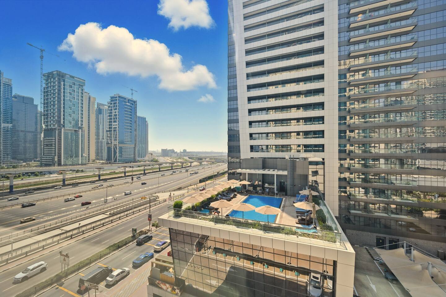 Getting around the area is extremely convenient, thanks to Yacht Bay Tower’s prime location in the heart of Dubai Marina. The Dubai Marina Metro Station and the Dubai Tram Station are just a short walk away, offering fast and direct access to JBR, Palm Jumeirah, Mall of the Emirates, and Downtown Dubai. The neighborhood is fully connected by RTA buses, taxis, and ride-hailing services such as Uber and Careem, which are available 24/7 and typically arrive within minutes. For guests who prefer moving on foot, the Marina Walk provides safe, well-lit pedestrian paths along the waterfront, making it easy to reach cafés, supermarkets, restaurants, and recreational areas without relying on a car. Its combination of metro, tram, road access, and pedestrian-friendly design makes Dubai Marina one of the most accessible and well-connected districts in the entire city. Guests can navigate both the Marina and the wider Dubai area quickly and comfortably.